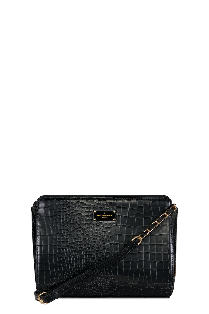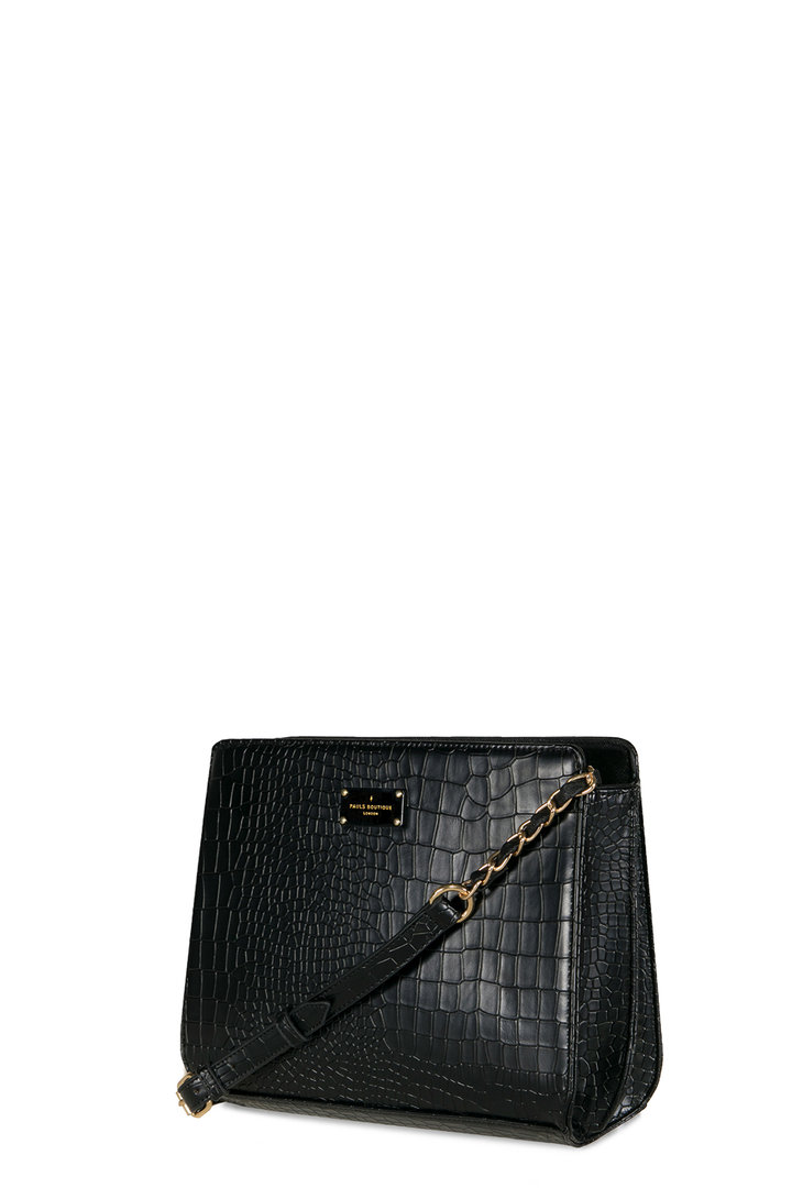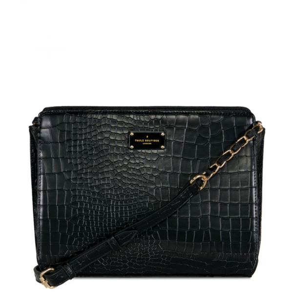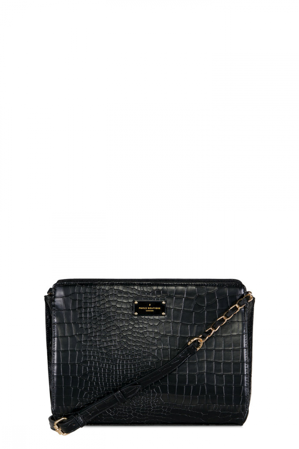 – Strukturierte Umhängetasche im Pouch-Stil mit schwarzem Croc-Struktur-Finish