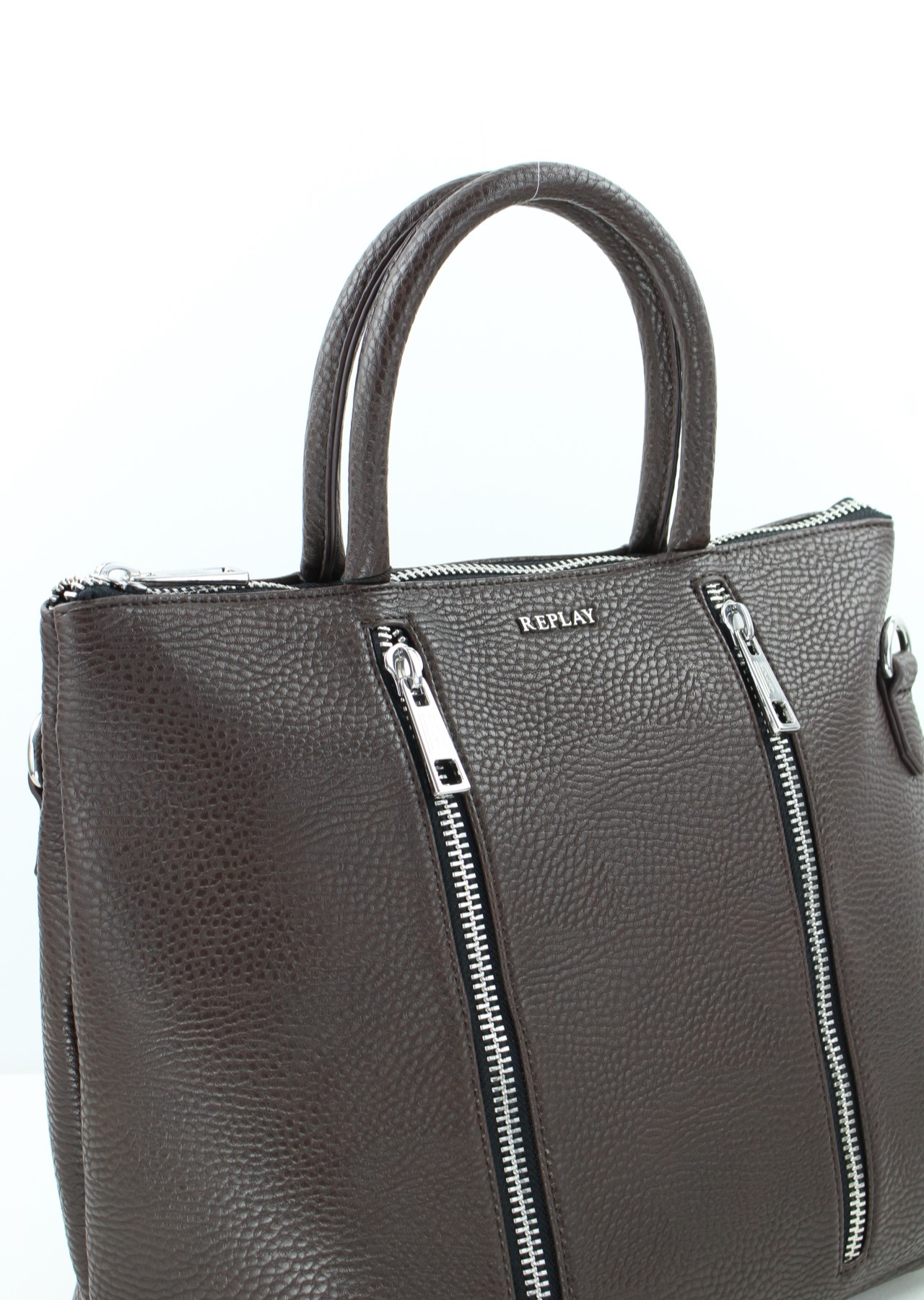 REPLAY Shopper Tasche braun Kunstleder mit silber Details