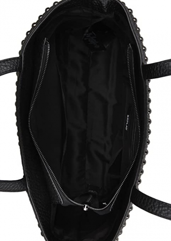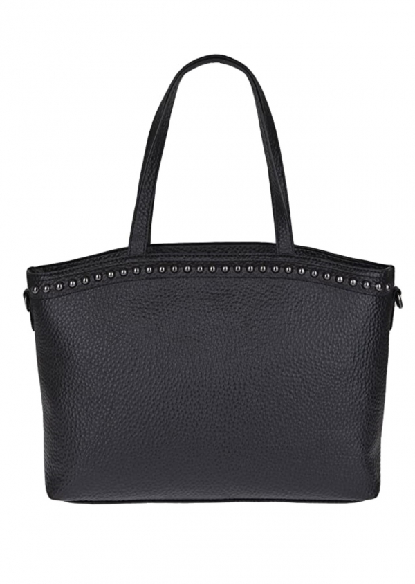 Unifarbene Shopper Tasche aus strukturiertem Kunstleder Mit Nietenapplikationen.
